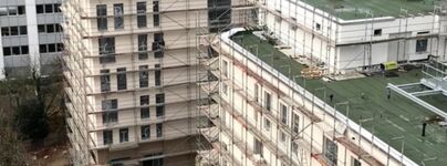 Großprojekt Lido Offenbach: Die Schauseite des Gebäudekomplexes präsentiert sich ohne Gerüst