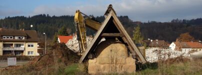 Die Abrissarbeiten auf dem Gelände des ehemaligen Evangelischen Gemeindezentrums Brücke in der Schwäbisch Gmünder Weststadt sind in vollem Gang. Für die neue Wohnanlage Eutighofer Tor soll Platz geschaffen werden. In einer Ecke des großen Areals thront ein Relikt des ehemaligen Evangelischen Gemeindezentrums – das kleine Backhäusle. Die Bagger machen einen großen Bogen darum. Die Gemeindeglieder der Weststadtgemeinde verbinden mit dem kleinen Gebäude viele Erinnerungen an gemeinsame Stunden. Der respektvolle Abstand zu diesem Symbol bürgerschaftlicher Gemeinschaft ist gut und richtig – denn das kleine Backhäusle wird erhalten. Architekt Thomas Sonnentag hatte sich in vielen Gesprächen mit dem Investor und Oberbürgermeister Arnold für den Erhalt des symbolträchtigen Kleinods eingesetzt. Das Backhäusle wird – laut Thomas Sonnentag – sorgsam in seine Einzelteile zerlegt und und zunächst auf dem Gelände des städtischen Bauhofs sicher gelagert. Danach soll es an einer geeigneten Stelle wieder aufgebaut werden. Die Remszeitung berichtet darüber in ihrer Ausgabe vom 28.11.20. Fotografie: Sonnentag Architektur